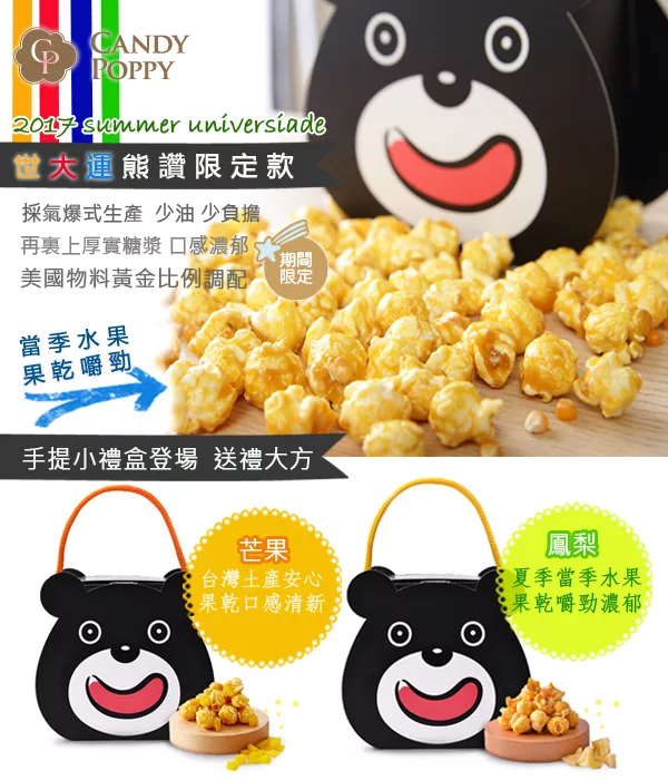Candypoppy 糖果波比-世大運熊讚裹糖爆米花小禮盒(芒果、100g)![]()